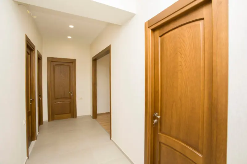 Стоимость шпонированных дверей ниже, чем эмалированных. Однако есть у конструкций и минус. Заключается он в уязвимости перед солнечными лучами, изменениями влажности, высокими температурами. Однако для многих мест установки эти нюансы не имеют большого значения.