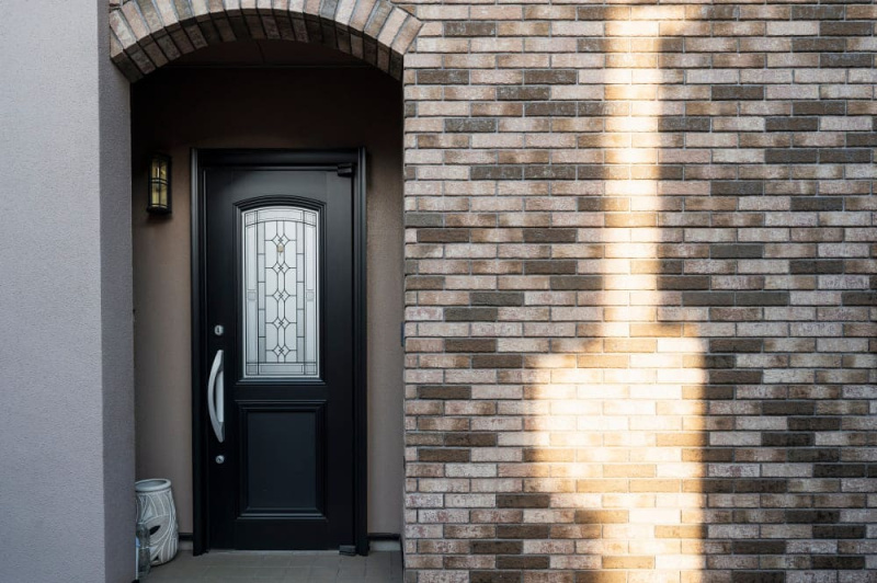 - Внешний вид. Входная дверь расположена на виду, поэтому должна подходить к фасаду здания, выступать его частью, а заодно — подходить для внутреннего пространства дома.
