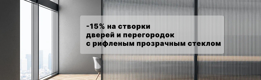 Не упустите шанс сэкономить 15 % на дверях и перегородках с эффектным закалённым рифлёным стеклом! Акция распространяется на продукцию Minoli: